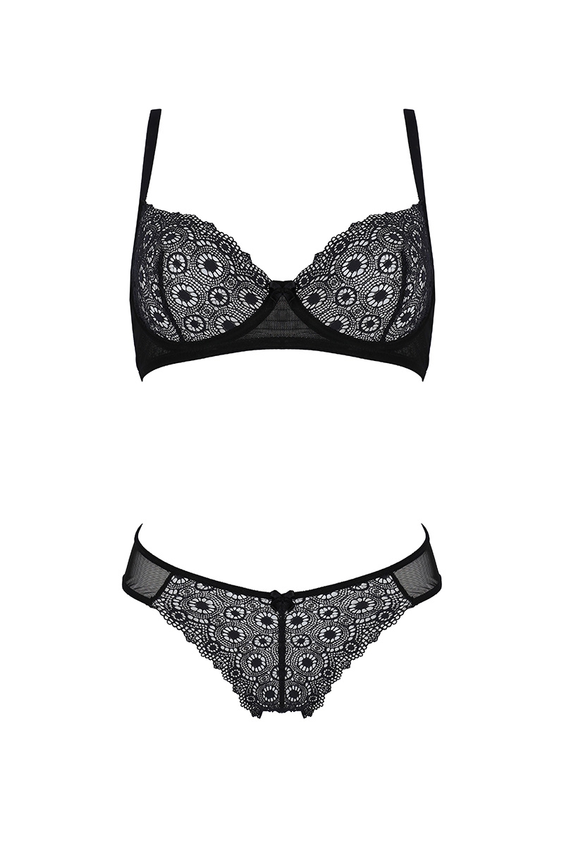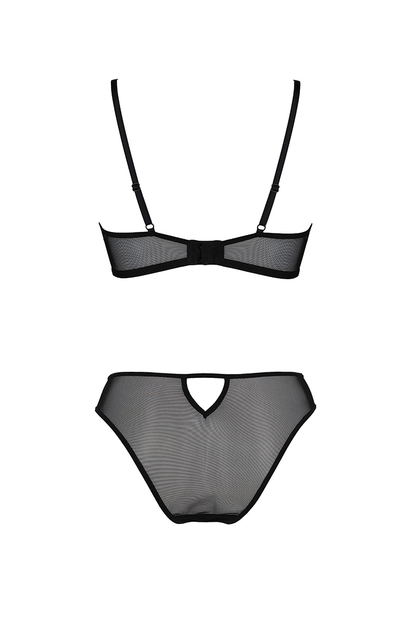 Elégant petit ensemble soutien-gorge balconnet et culotte fantaisie en tulle et dentelle issus de fibres recyclées, un design féminin pour une lingerie respectant la planète.