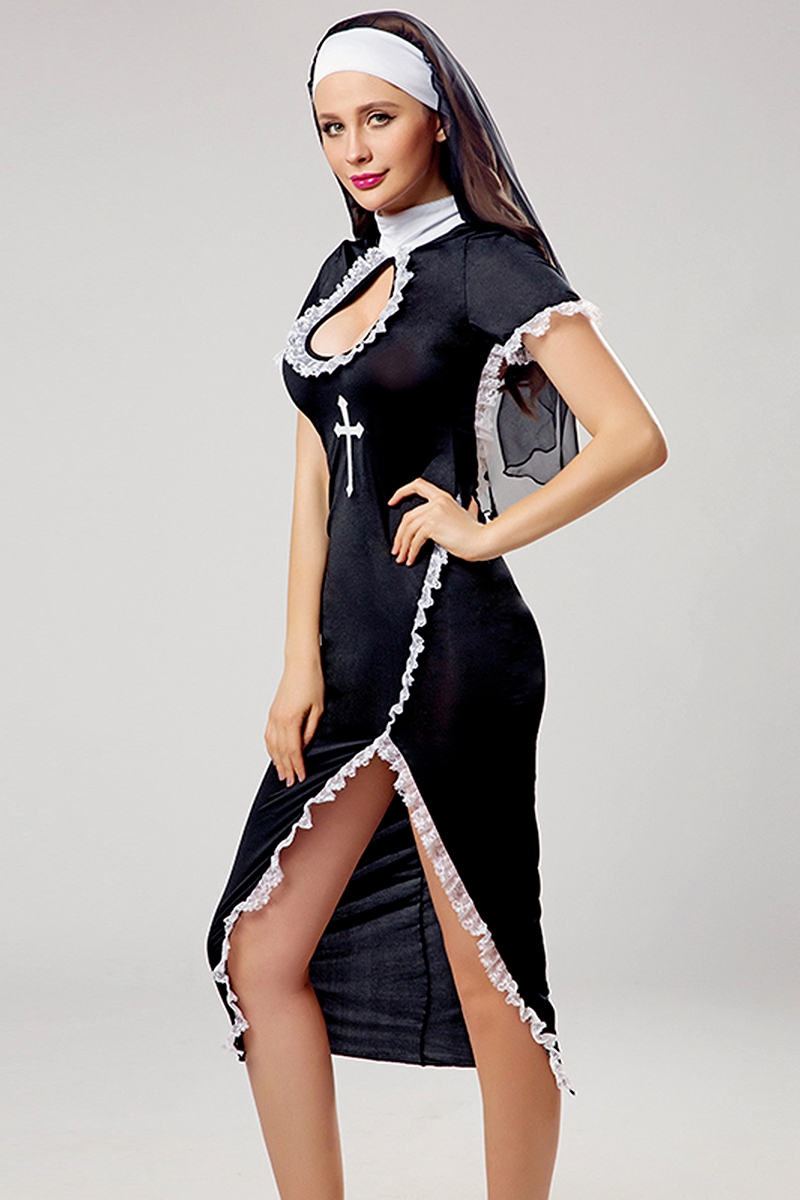 Vous aimez braver les tabous? cette robe longue ultra sexy de religieuse et ses accessoires sont faits pour vous !