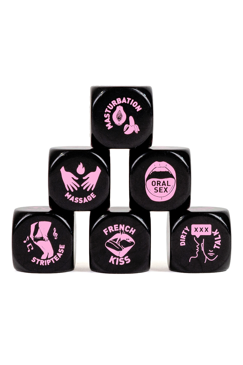 Dé spécial préliminaires avec 6 faces action: striptease, masturbation, fellation, french kiss, langage cru et massage.