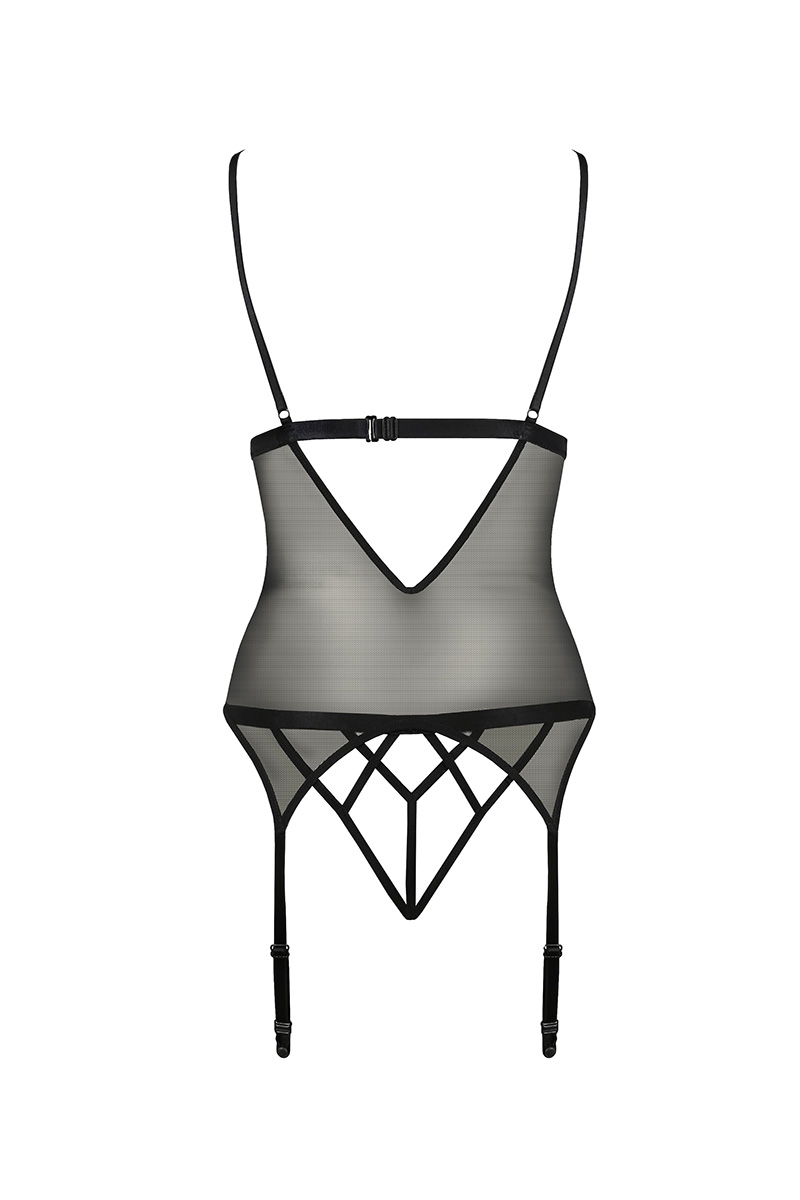 Ensemble guêpière seins nus et string Diabolina, par Passion Lingerie.