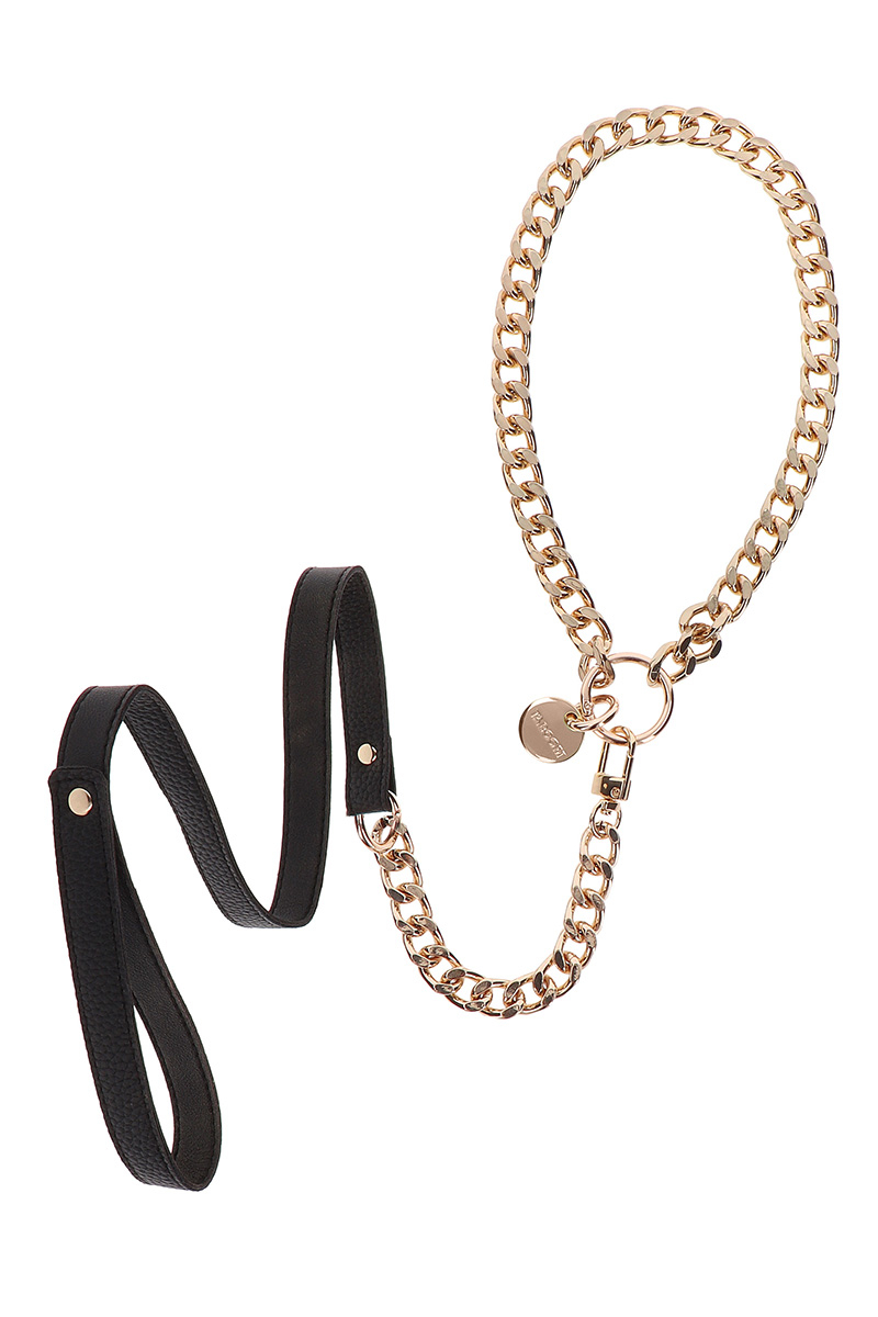 Luxueuse laisse BDSM « Taboom Dona Statement » en cuir PU et métal doré rose gold.
