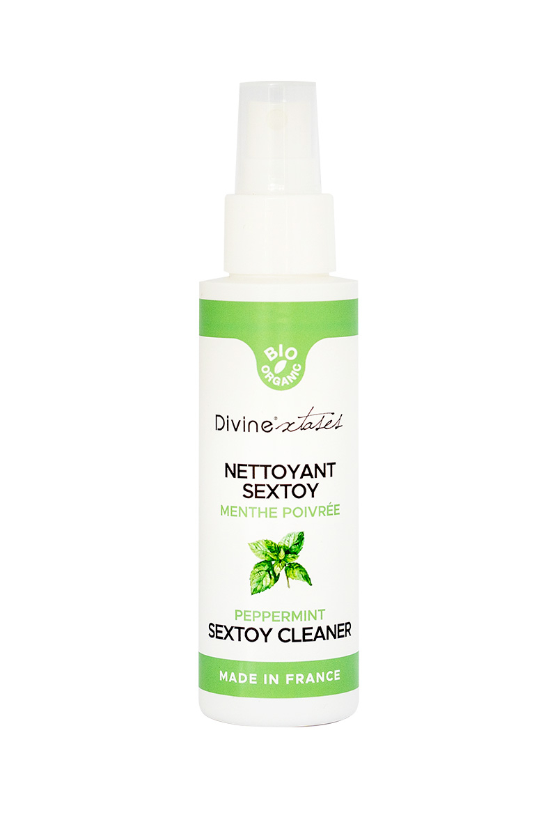 Prenez soin de vos jouets intimes avec le nettoyant Bio de Divinextases parfumé à la menthe poivrée.