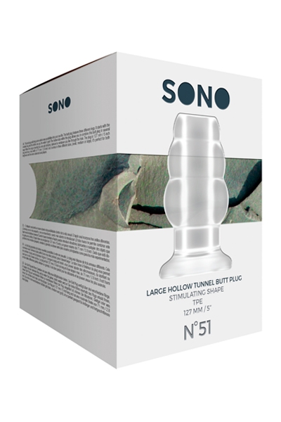 Plug anal translucide grande taille, creux au milieu, 12,7 cm de long par 7,1 cm de diamètre maxi.