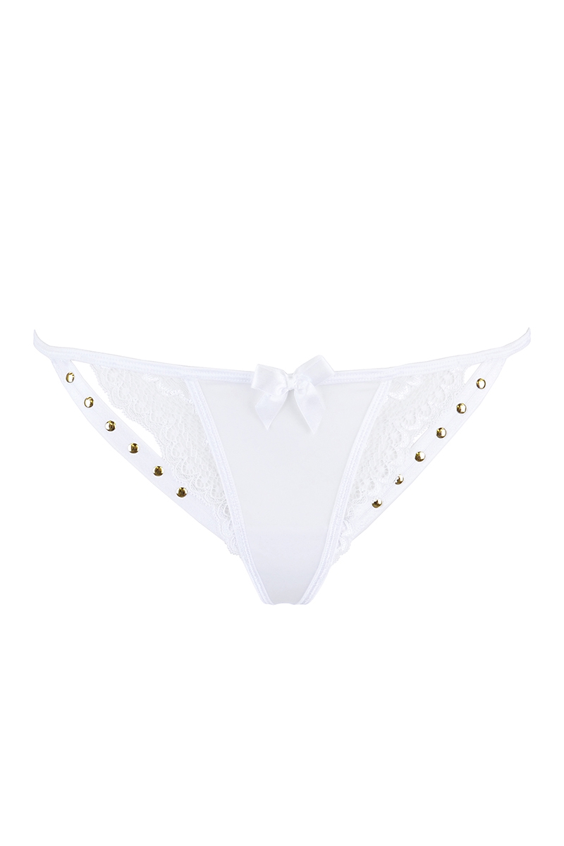 Petit string blanc très sexy décoré de clous dorés sur les cotés.