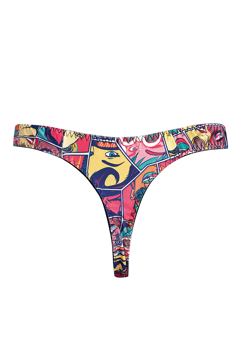 String sexy pour homme fabriqué en tissu imprimé de visages inspirés des comics et du pop art par la marque Anaïs For Men en Europe