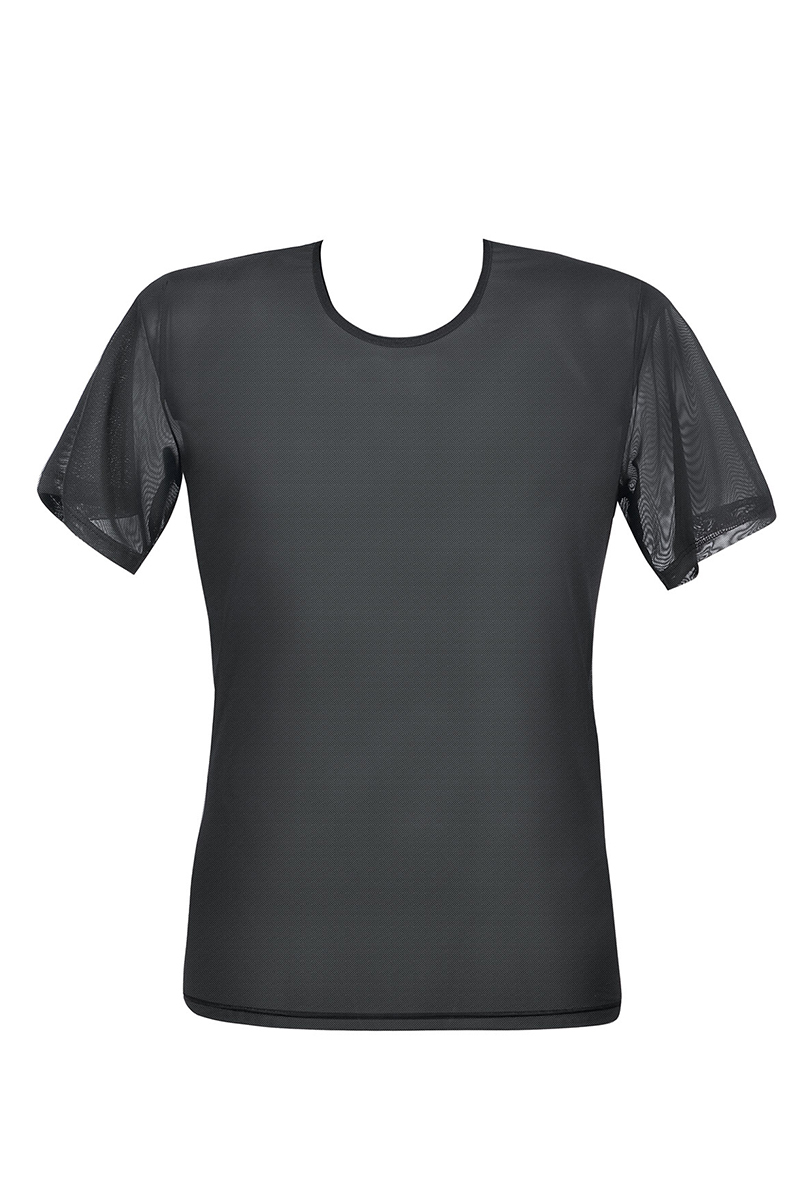 T-shirt sexy pour homme fabriqué en Tulle noir transparent doux au toucher par la marque Anaïs For Men en Europe
